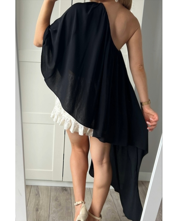 Czarna asymetryczna elegancka bluzka na jedno ramię