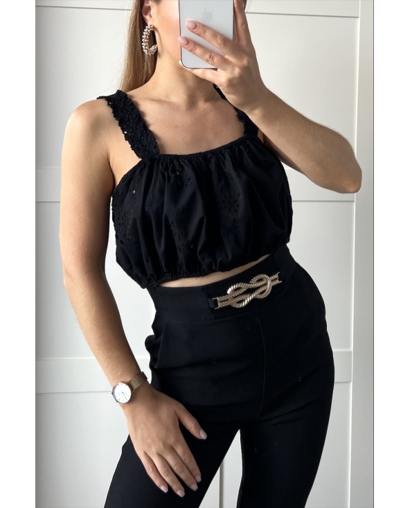 Bawełniany uroczy ażurowy top bluzka o krótszym kroju w stylu boho