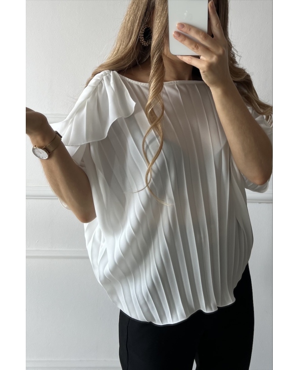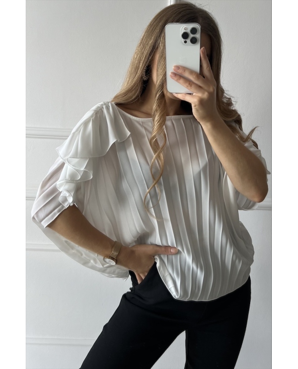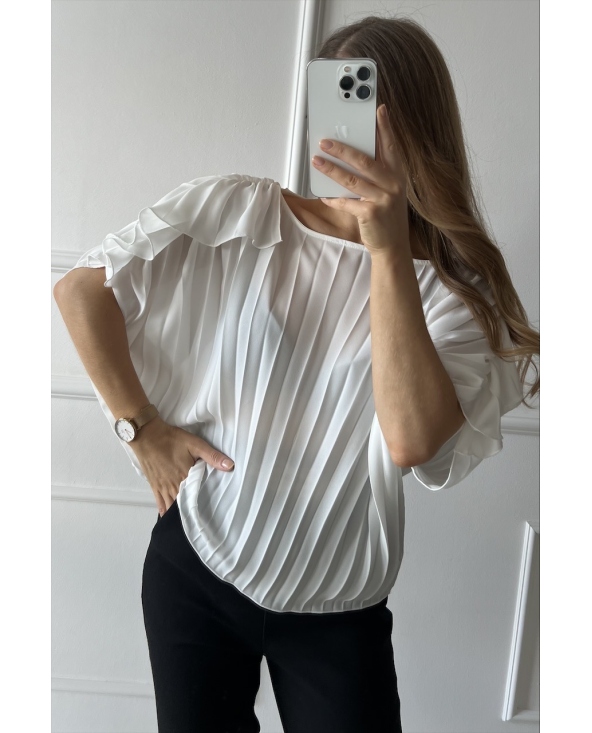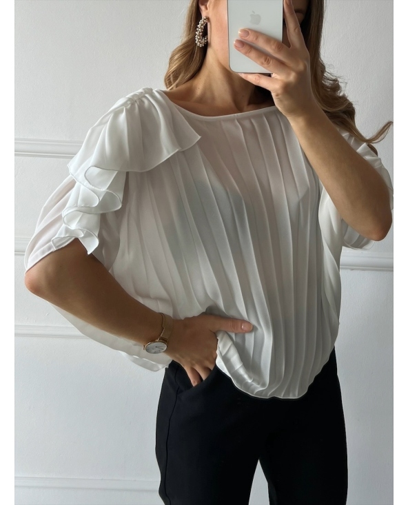 Biała plisowana koszula z falbankami