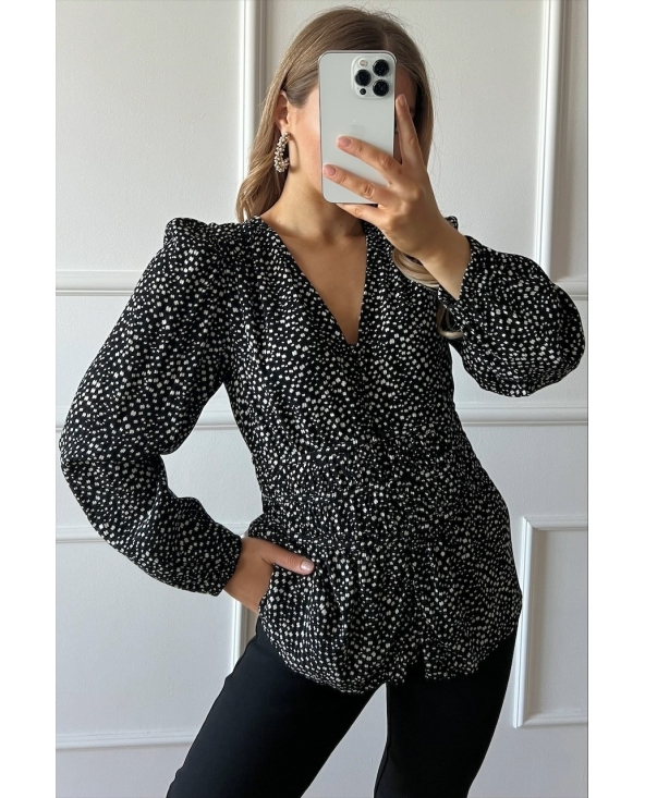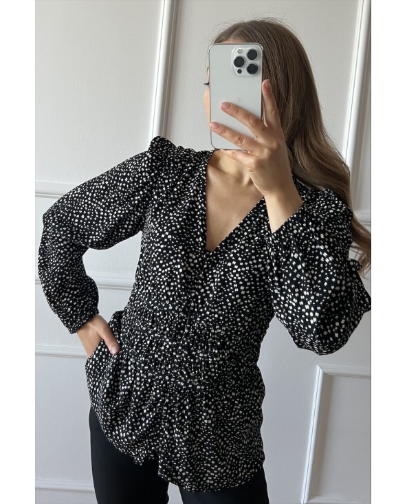 Czarna wiskozowa bluzka z printem