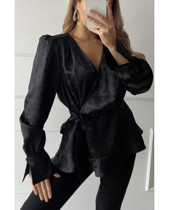 Satynowa koszula w grochy z wiązaniem