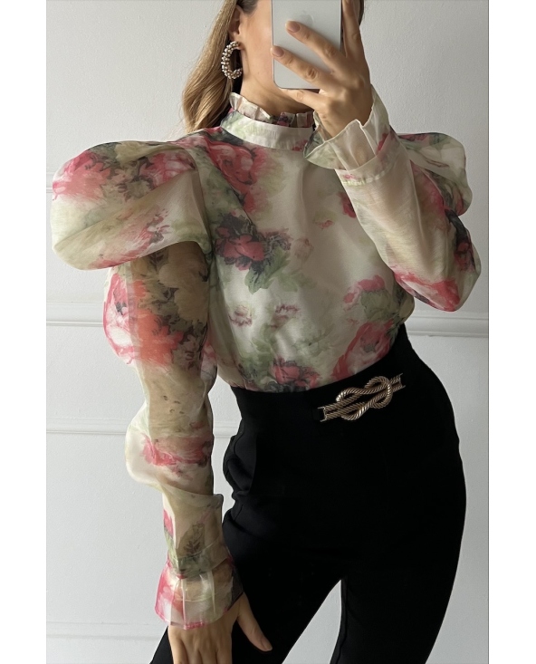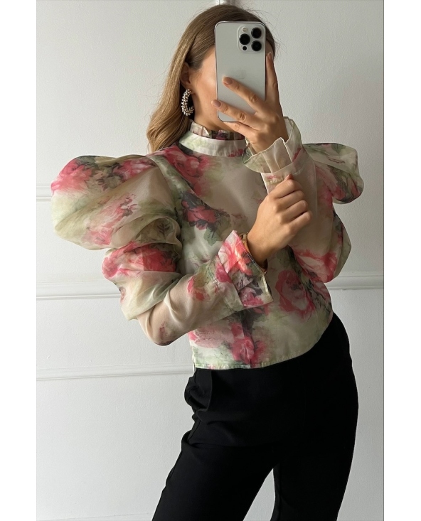 Kwiecista koszula z bufiastymi rękawami